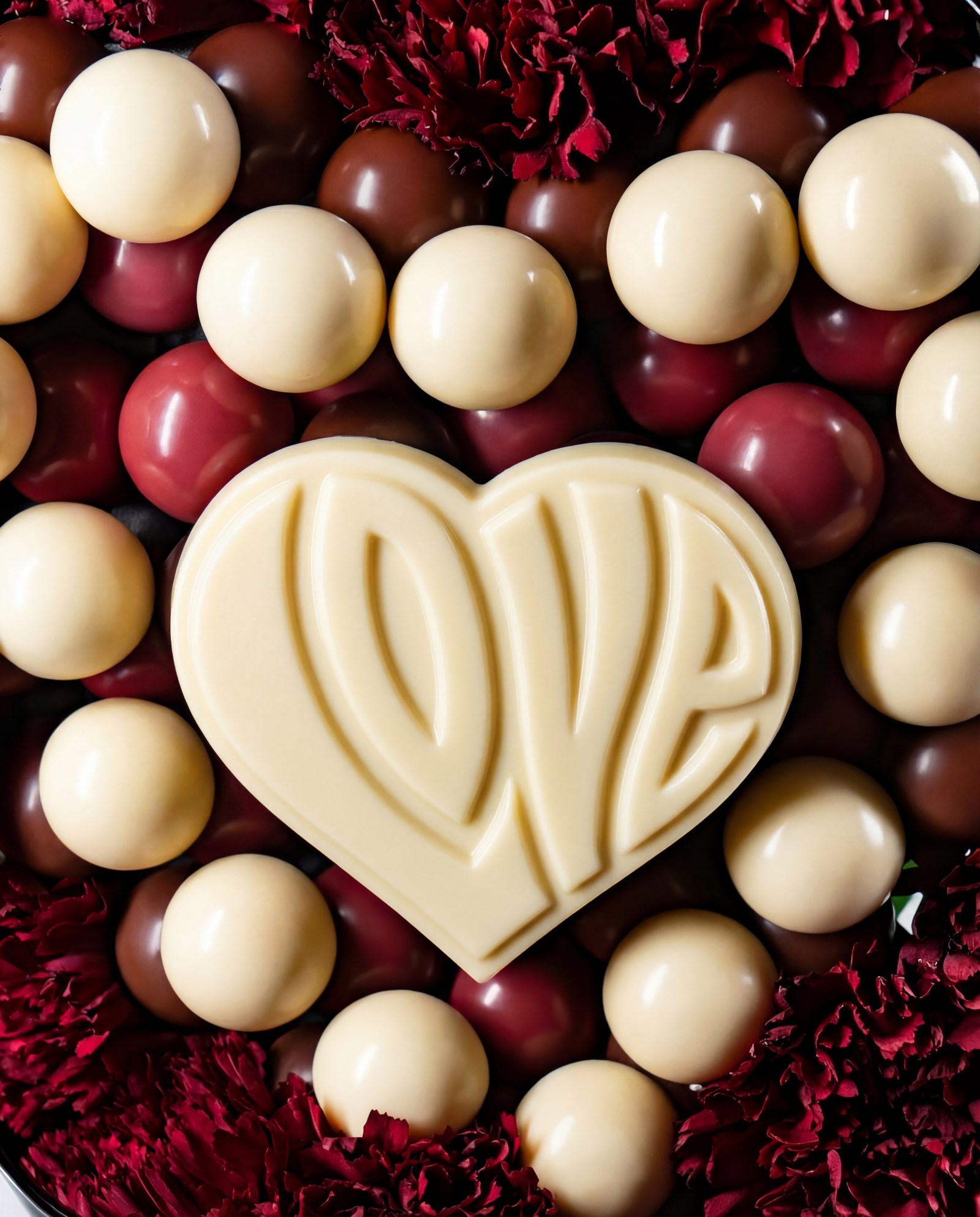 “LOVE” detaylı kalp formunda özel çikolata