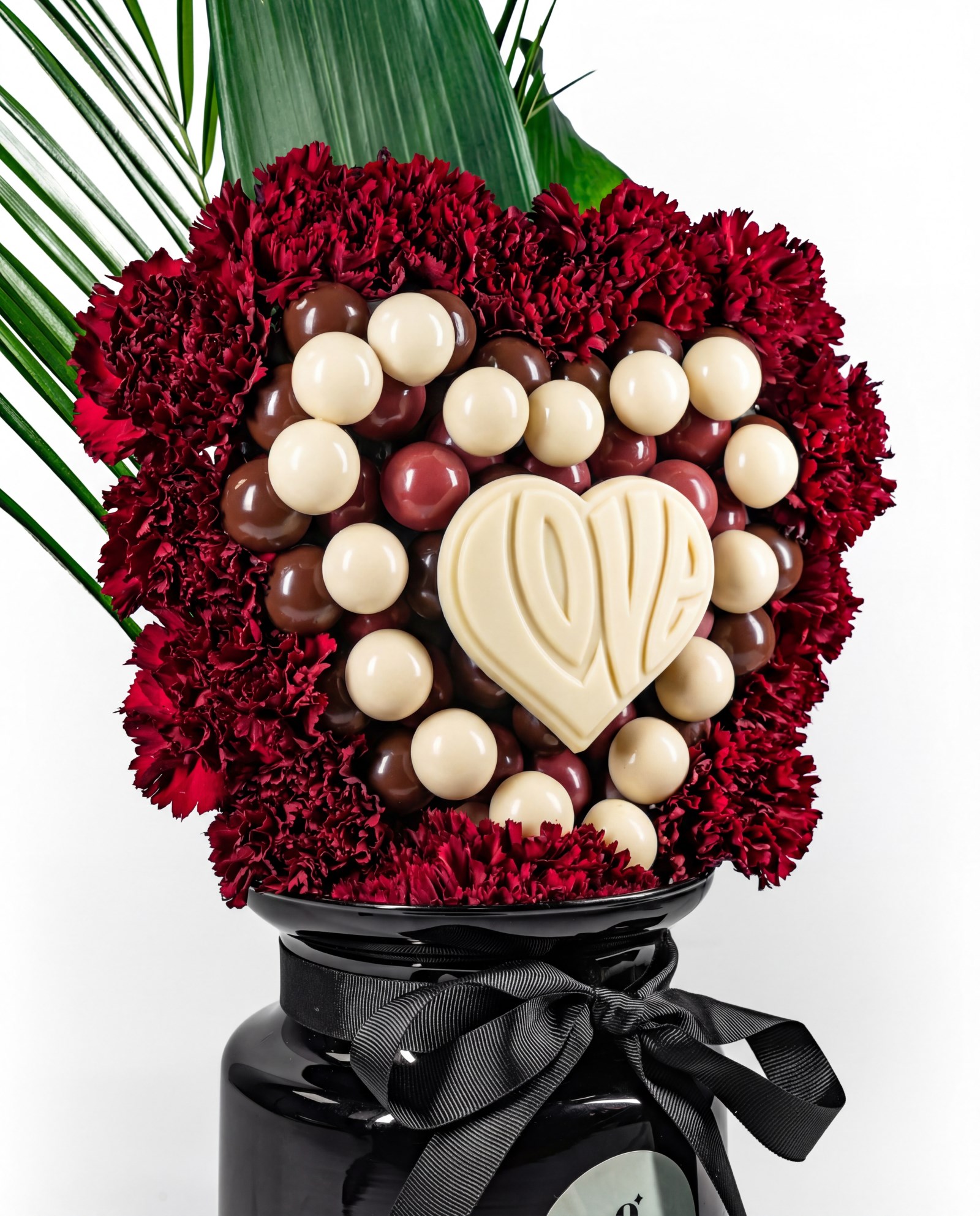 Choclot Love; kırmızı tonların tutkusu, kalp formunda çikolataların tatlı uyumu ve güçlü yeşil dokunuşlarla hazırlanmış özel bir aranjmandır. Merkezinde yer alan “LOVE” detaylı çikolata kalp, bu tasarımın duygusunu tek bakışta anlatır.