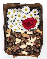 Choclot Sweet Daisy; beyaz papatyaların zarif ferahlığı, tek bir kırmızı gülün anlamı ve el yapımı Choclot çikolataların zengin seçkisiyle hazırlanmış özel bir hediye kutusudur. İlk bakışta masum ve aydınlık, her lokmada mutluluk veren bir sürpriz sunar.